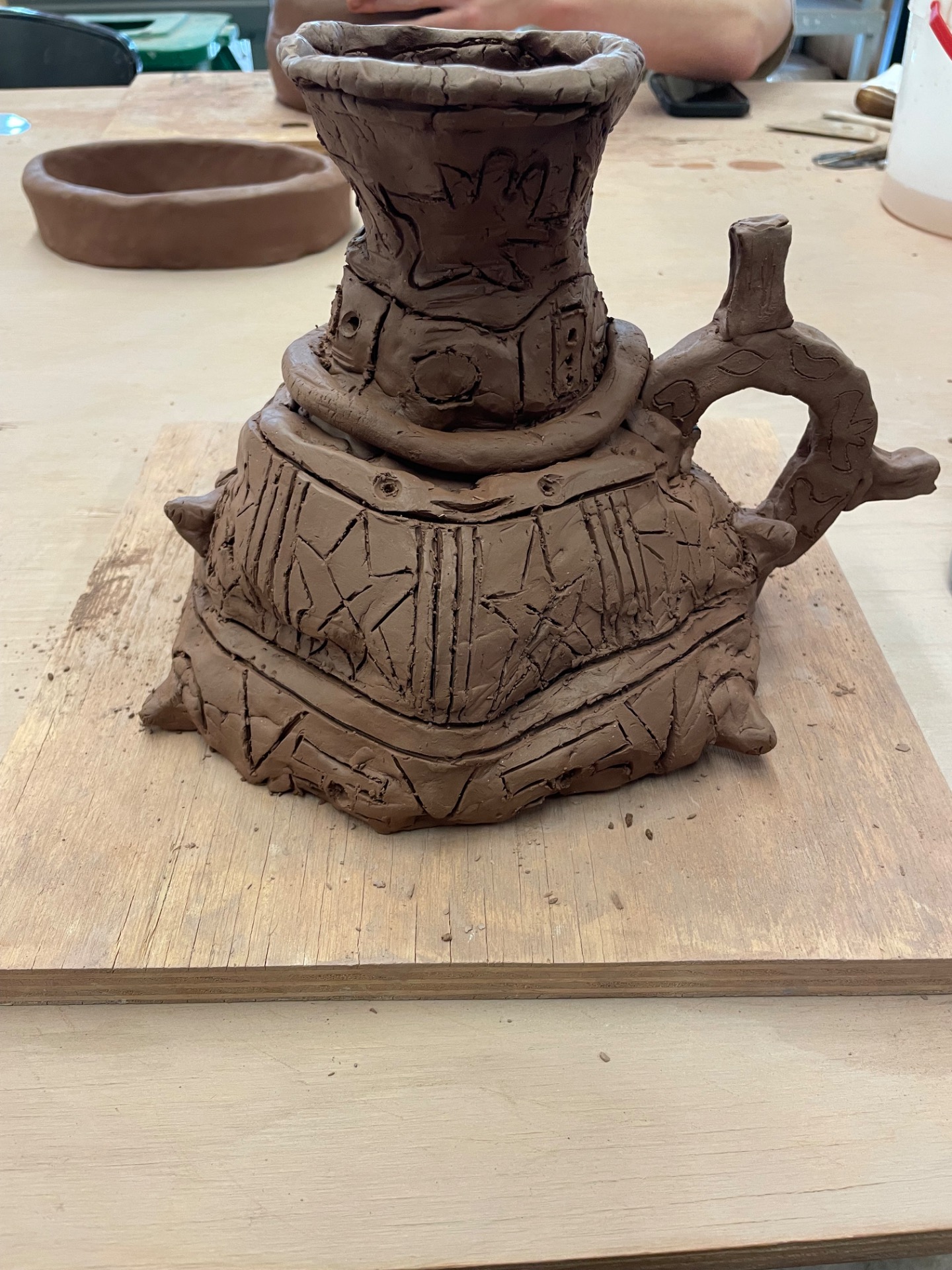 For my historical vessel project, I took inspiration from other ceramic figures from Japanese, Peruvian, and Colombian cultures to make my vase. Currently, I am waiting for my vessel to finish drying, then I'll go back and paint it. I haven't decided on a color palette, but I really like the yellow from the Peruvian Spout and Bridge, so I...